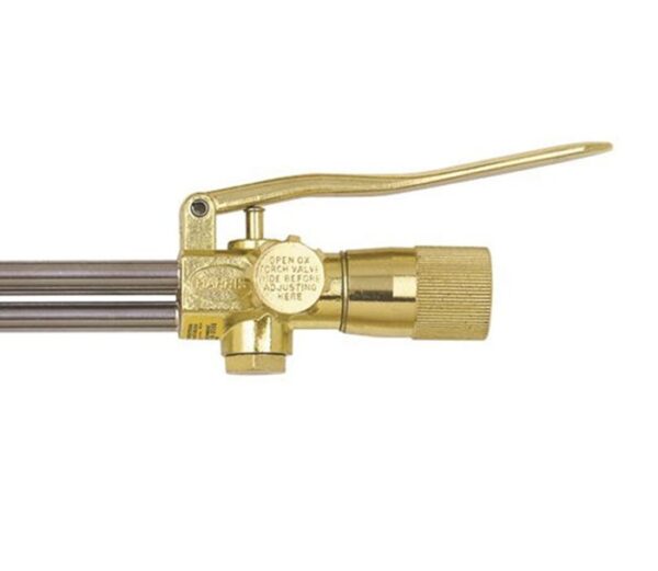 This Medium Duty Cutting Attachment is a model 72-3. This is one of Harris’ classic designs that provides exceptional strength and rigidity but is also light in weight due to the brazed triangular stainless steel tubes. The seats and “O” rings are protected from damage by the captive union nut. The ease-on cutting valve allows for smoother controlled starts. To allow for easier connection, even with gloves on, the cutting valve also folds forward. The head is also forged from solid brass to provide years of dependable, safe service, even under the most abusive conditions.