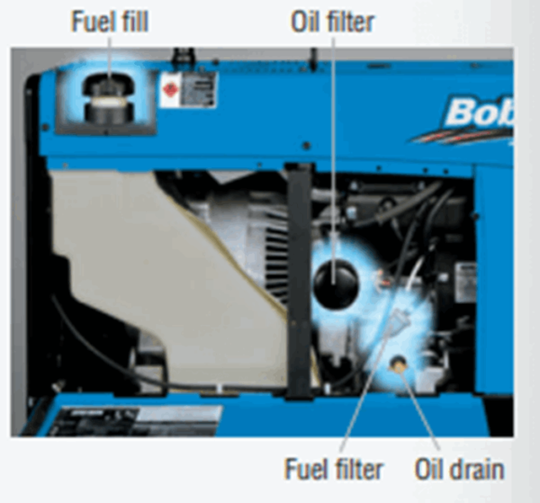 Easier Maintenance With its intuitive design, the daily maintenance of our Bobcat welder/generators is faster and easier. With front panel maintenance displays, you know when your equipment needs to be serviced. And servicing is simple because of: